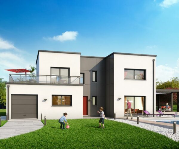 Explorez la maison Arizona, une demeure élégante et spacieuse pensée pour répondre aux besoins de votre famille. Avec son design en forme de U et sa toiture-terrasse, cette maison à étages offre un environnement de vie moderne et fonctionnel, parfaitement adapté à votre mode de vie.
